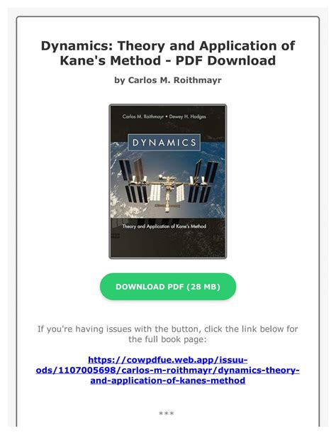 Read ebook online dynamics theory application kanes method Doc By Click Button. ebook online dynamics theory application kanes method it’s easy to recommend a new book category such as Novel, journal, comic, magazin, ect. You see it and you just know that the designer is also an author and understands the challenges involved with having a good book. You can easy klick for detailing book and you can read it online, even you can download it